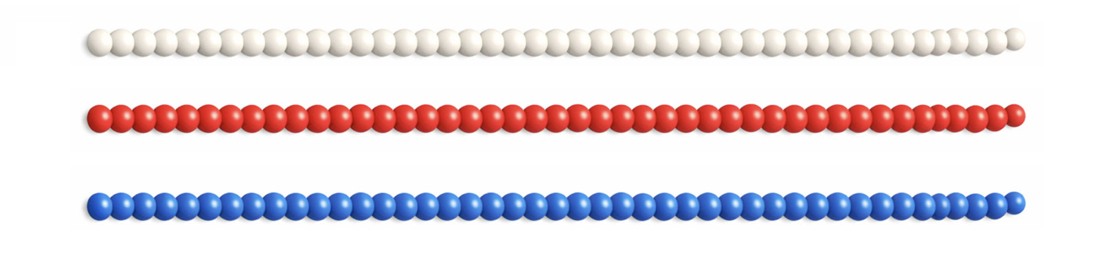 Ezeket a fehérjeláncokat a könnyebb megértés érdekében a nyakláncokhoz hasonló gyöngyszemekből álló gyöngysorok formájában ábrázoltam.