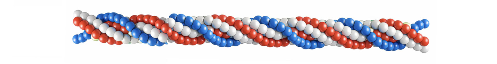 A színek csak azt a célt szolgálják, hogy a három egymás köré tekeredett fehérjelánc jól láthatóan elkülönüljön egymástól.