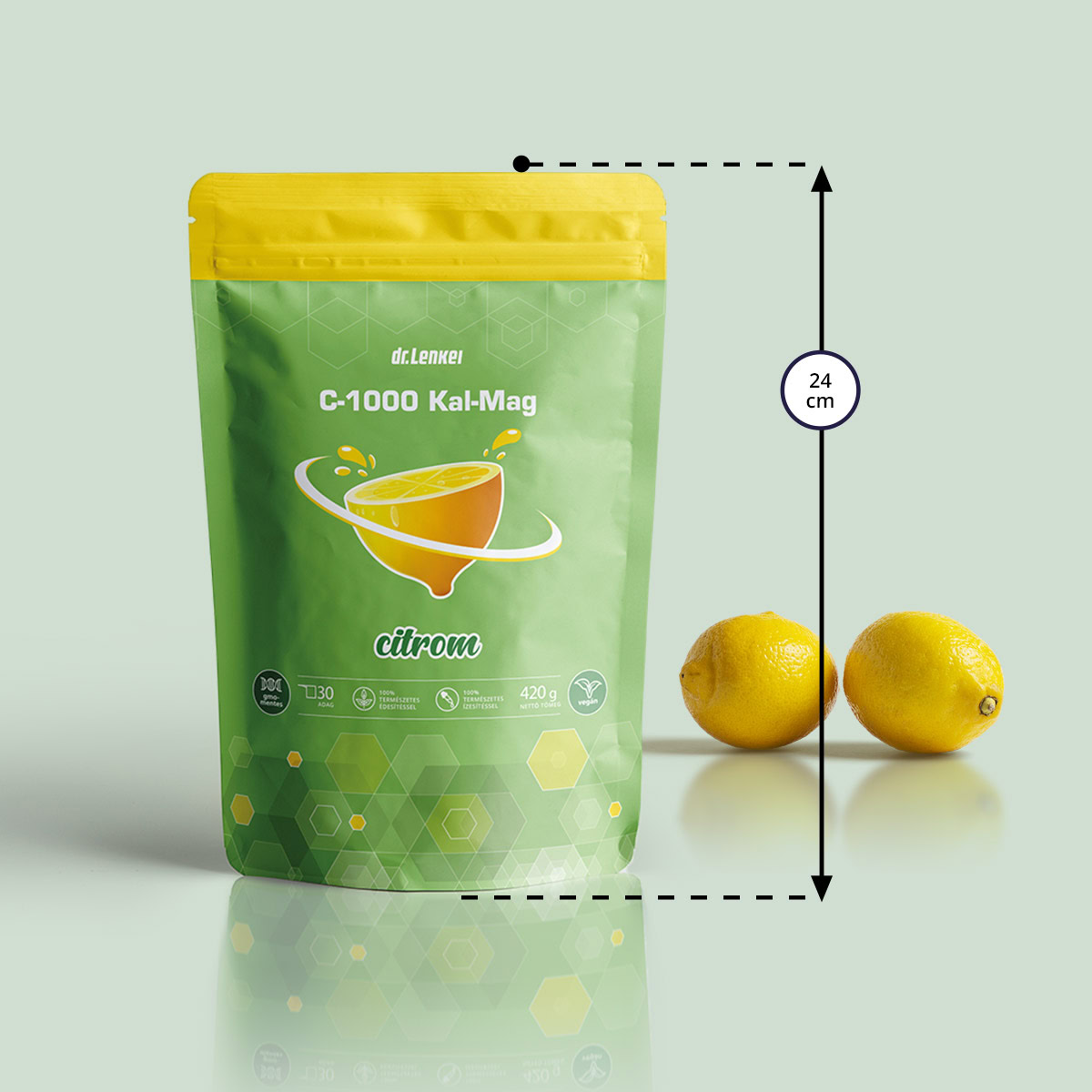 C-vitamin, kalcium- és magnéziumtartalmú italpor édesítőszerekkel, citromízű étrend-kiegészítő