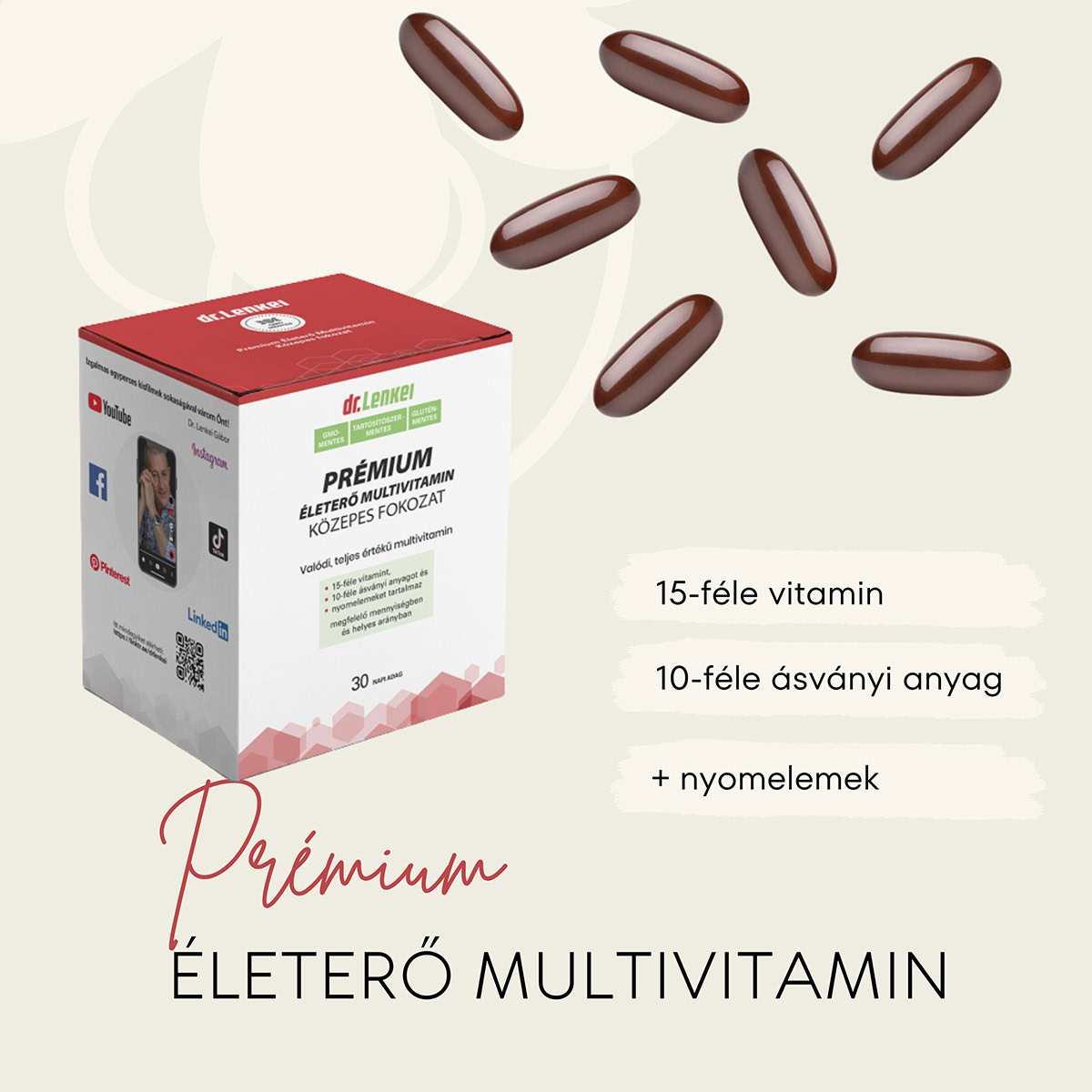 Dr. Lenkei Prémium Életerő Multivitamin Közepes fokozat, étrend-kiegészítő lágykapszula